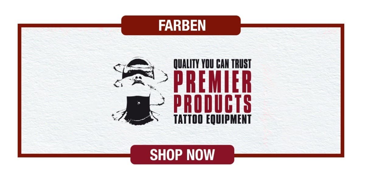 Ihr habt die Wahl zwischen unserer Hausmarke Premier Products Tattoofarben, Intenze Tattoo Ink, Kuro Sumi Imperial, Just Ink Tattoo Colors, Worldfamous Tattoo Inks, Eternal Colors, I AM Ink, 77266 Carbon Black ...